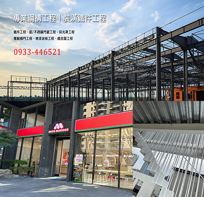 服務項目:鐵件工程、鋁門窗工程、採光罩工程、白鐵門窗工程、電動捲門工程、烤漆浪板工程、鐵皮屋工程等